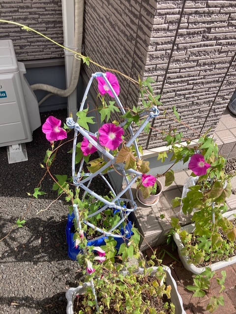 写真はわが家の玄関です。もう寒いですがまだ朝顔が頑張っています✿